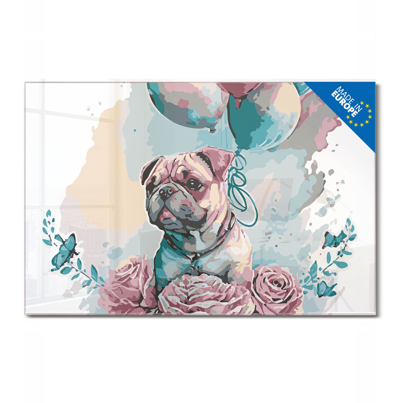 - Motiv: Nummer 13415 Mops mit Ballons Aquarell
