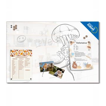 Auf der glatten Glasoberfläche lassen sich Termine, Rezepte oder Notizen ganz einfach mit Kreidestiften festhalten und rückstandslos entfernen. Starke Neodym-Magnete halten Ihre wichtigsten Erinnerungen sicher an Ort und Stelle. So entsteht Ihre ganz persönliche Ideenwand - jeden Tag neu.