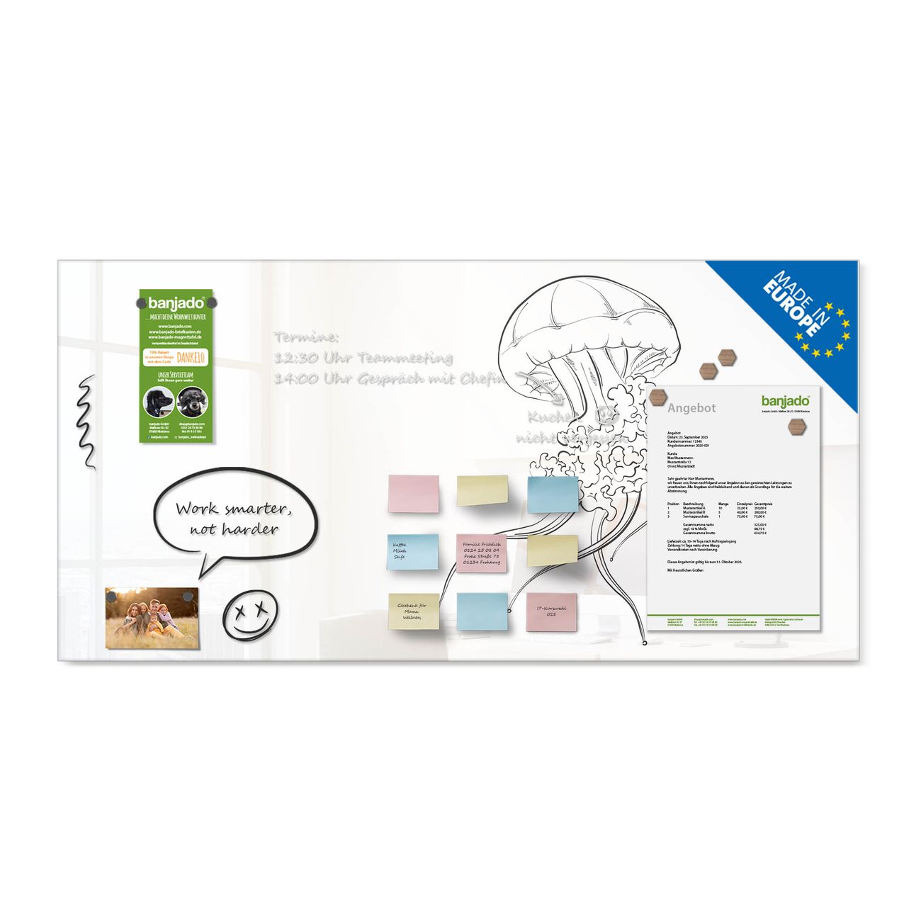 Jede Glas Magnettafel wird in unserer Werkstatt von Hand gefertigt und sorgfältig geprüft. So erhalten Sie ein echtes Qualitätsprodukt, das Funktion und Ästhetik perfekt vereint.?? Warum banjado?