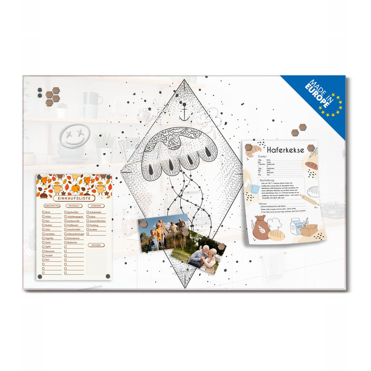 Auf der glatten Glasoberfläche lassen sich Termine, Rezepte oder Notizen ganz einfach mit Kreidestiften festhalten und rückstandslos entfernen. Starke Neodym-Magnete halten Ihre wichtigsten Erinnerungen sicher an Ort und Stelle. So entsteht Ihre ganz persönliche Ideenwand - jeden Tag neu.