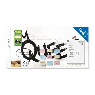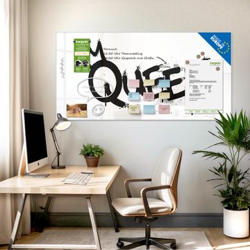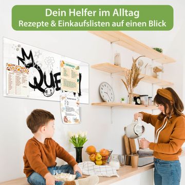 Auf der glatten Glasoberfläche lassen sich Termine, Rezepte oder Notizen ganz einfach mit Kreidestiften festhalten und rückstandslos entfernen. Starke Neodym-Magnete halten Ihre wichtigsten Erinnerungen sicher an Ort und Stelle. So entsteht Ihre ganz persönliche Ideenwand - jeden Tag neu.