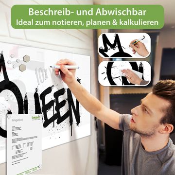 Die banjado Glas Magnettafel mit dem Motiv Motiv Queen Graffiti verbindet Funktionalität mit Stil. Sie ersetzt das Zettelchaos durch klare Strukturen und bringt dabei eine warme, natürliche Atmosphäre in Ihr Zuhause. Ob im Büro, in der Küche oder im Eingangsbereich - dieses Design-Board zieht Blicke an und sorgt für Ordnung mit Charakter.