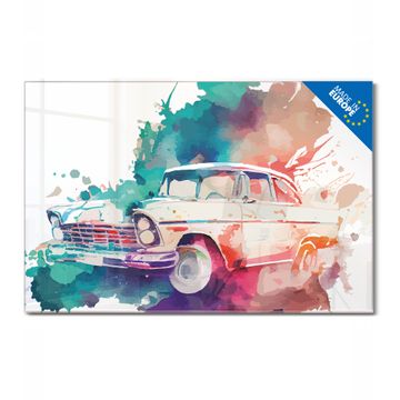 Glas Magnettafel im Querformat Motiv Retro-Auto in Aquarell