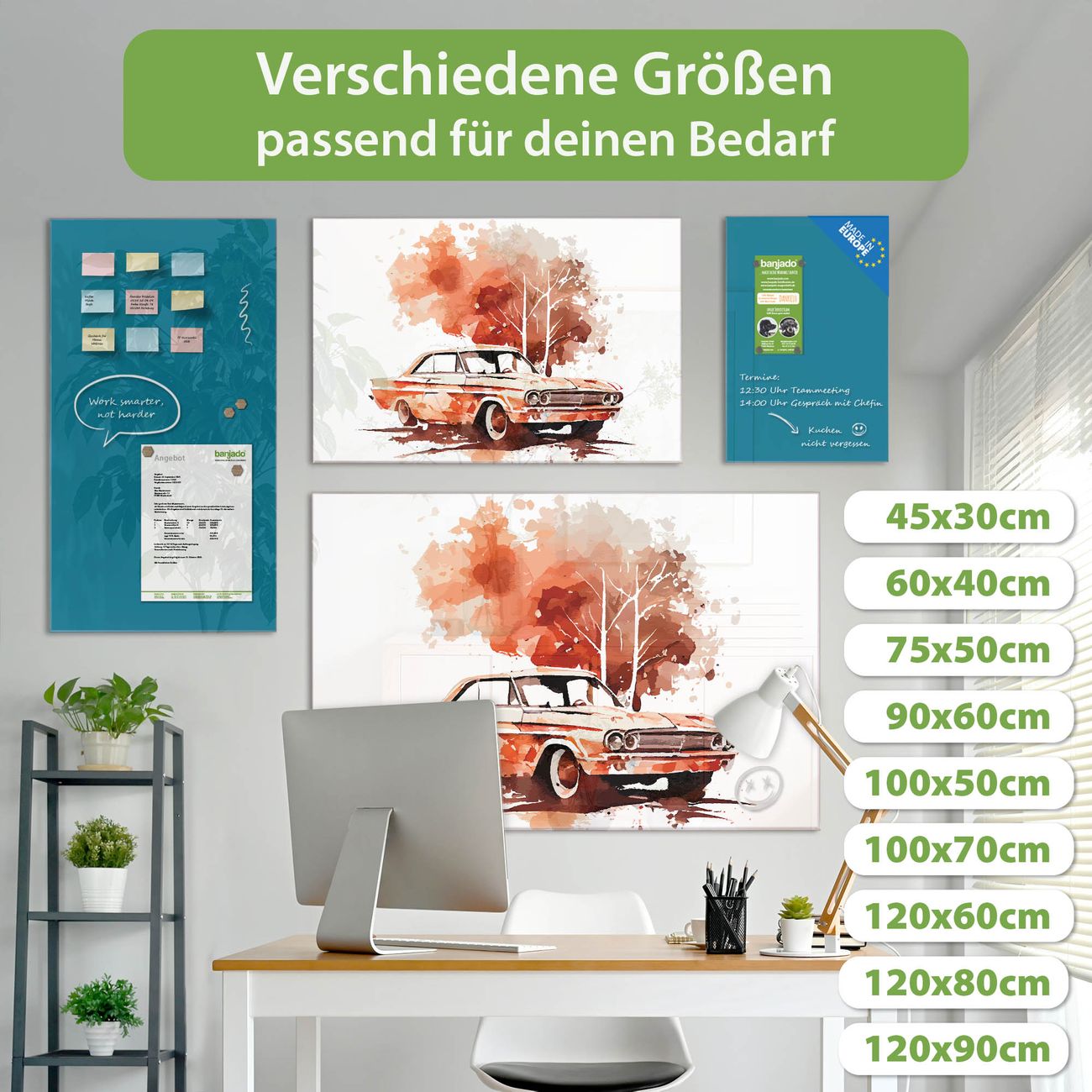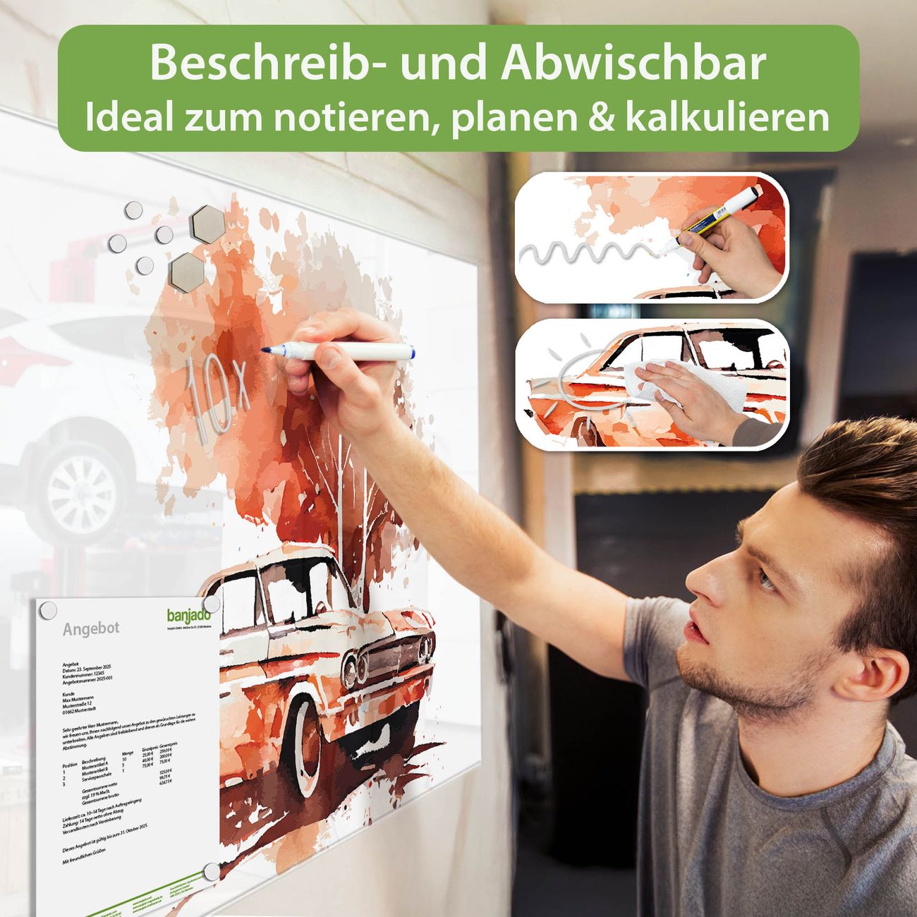 Jede Glas Magnettafel wird in unserer Werkstatt von Hand gefertigt und sorgfältig geprüft. So erhalten Sie ein echtes Qualitätsprodukt, das Funktion und Ästhetik perfekt vereint.?? Warum banjado?