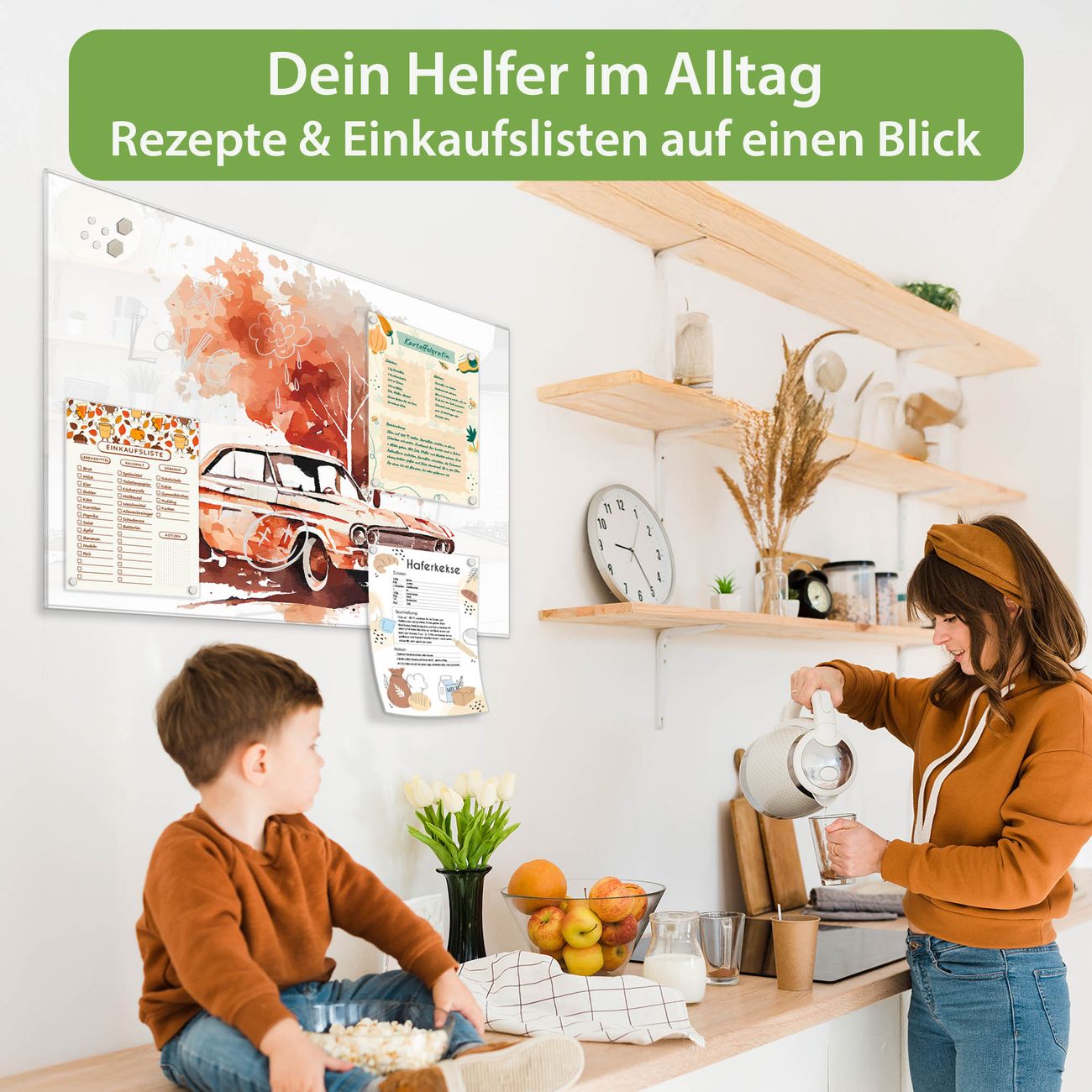 Auf der glatten Glasoberfläche lassen sich Termine, Rezepte oder Notizen ganz einfach mit Kreidestiften festhalten und rückstandslos entfernen. Starke Neodym-Magnete halten Ihre wichtigsten Erinnerungen sicher an Ort und Stelle. So entsteht Ihre ganz persönliche Ideenwand - jeden Tag neu.