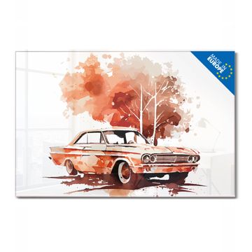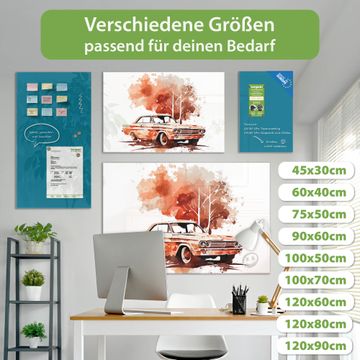 Glas Magnettafel im Querformat Motiv Retro-Fahrzeug in der Landschaft