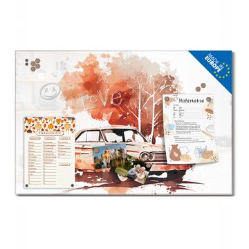 Die banjado Glas Magnettafel mit dem Motiv Motiv Retro-Fahrzeug in der Landschaft verbindet Funktionalität mit Stil. Sie ersetzt das Zettelchaos durch klare Strukturen und bringt dabei eine warme, natürliche Atmosphäre in Ihr Zuhause. Ob im Büro, in der Küche oder im Eingangsbereich - dieses Design-Board zieht Blicke an und sorgt für Ordnung mit Charakter.