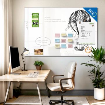 Glas Magnettafel im Querformat Motiv Retro Heißluftballon