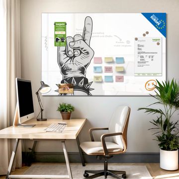 Ein Stück Design, das Ihren Alltag organisiert. Schreiben, heften, inspirieren - alles an einem Ort. Qualität, die man spürt. Montage leicht gemacht. Handwerk mit Herz - veredelt in Sachsen. Einzigartiges Design mit Motiv Motiv Rockgruß Beschreibbare Glasoberfläche, leicht zu reinigen Starke Magnetkraft durch Stahlrückwand Inklusive 4 Neodym-Magneten Flexible Montageoptionen Handveredelt in Sachsen - Qualität, die bleibt