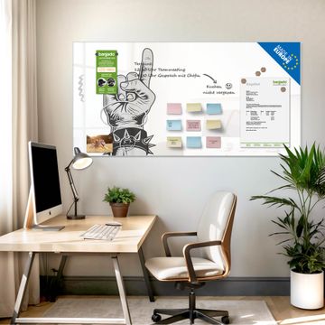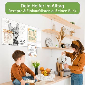 Auf der glatten Glasoberfläche lassen sich Termine, Rezepte oder Notizen ganz einfach mit Kreidestiften festhalten und rückstandslos entfernen. Starke Neodym-Magnete halten Ihre wichtigsten Erinnerungen sicher an Ort und Stelle. So entsteht Ihre ganz persönliche Ideenwand - jeden Tag neu.