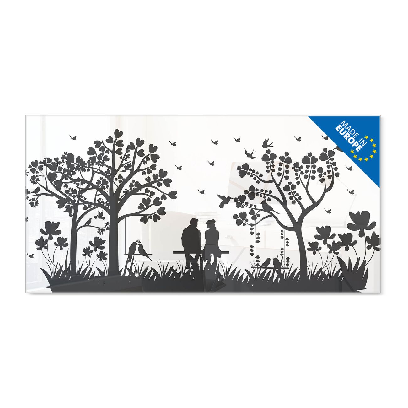 Ein Stück Design, das Ihren Alltag organisiert. Schreiben, heften, inspirieren - alles an einem Ort. Qualität, die man spürt. Montage leicht gemacht. Handwerk mit Herz - veredelt in Sachsen. Einzigartiges Design mit Motiv Motiv Romantische Silhouette im Park Beschreibbare Glasoberfläche, leicht zu reinigen Starke Magnetkraft durch Stahlrückwand Inklusive 4 Neodym-Magneten Flexible Montageoptionen Handveredelt in Sachsen - Qualität, die bleibt