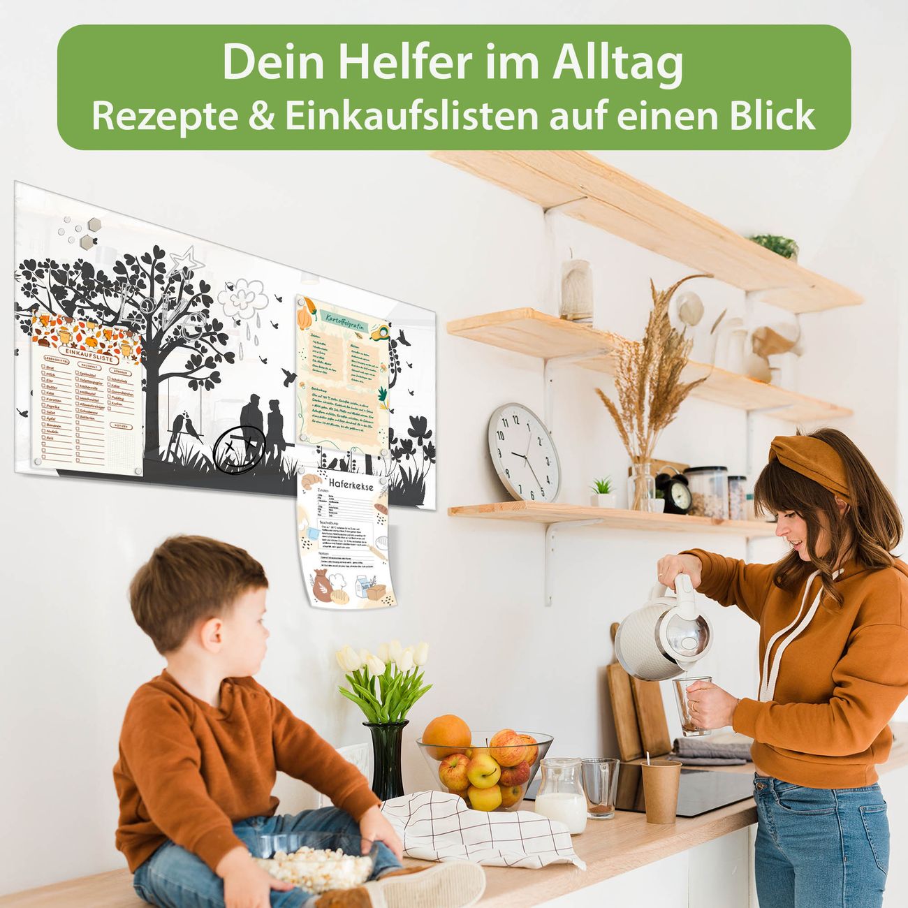 Auf der glatten Glasoberfläche lassen sich Termine, Rezepte oder Notizen ganz einfach mit Kreidestiften festhalten und rückstandslos entfernen. Starke Neodym-Magnete halten Ihre wichtigsten Erinnerungen sicher an Ort und Stelle. So entsteht Ihre ganz persönliche Ideenwand - jeden Tag neu.