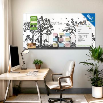 Die banjado Glas Magnettafel mit dem Motiv Motiv Romantische Silhouette im Park verbindet Funktionalität mit Stil. Sie ersetzt das Zettelchaos durch klare Strukturen und bringt dabei eine warme, natürliche Atmosphäre in Ihr Zuhause. Ob im Büro, in der Küche oder im Eingangsbereich - dieses Design-Board zieht Blicke an und sorgt für Ordnung mit Charakter.