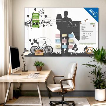 Die banjado Glas Magnettafel mit dem Motiv Motiv Romantische Silhouette verbindet Funktionalität mit Stil. Sie ersetzt das Zettelchaos durch klare Strukturen und bringt dabei eine warme, natürliche Atmosphäre in Ihr Zuhause. Ob im Büro, in der Küche oder im Eingangsbereich - dieses Design-Board zieht Blicke an und sorgt für Ordnung mit Charakter.