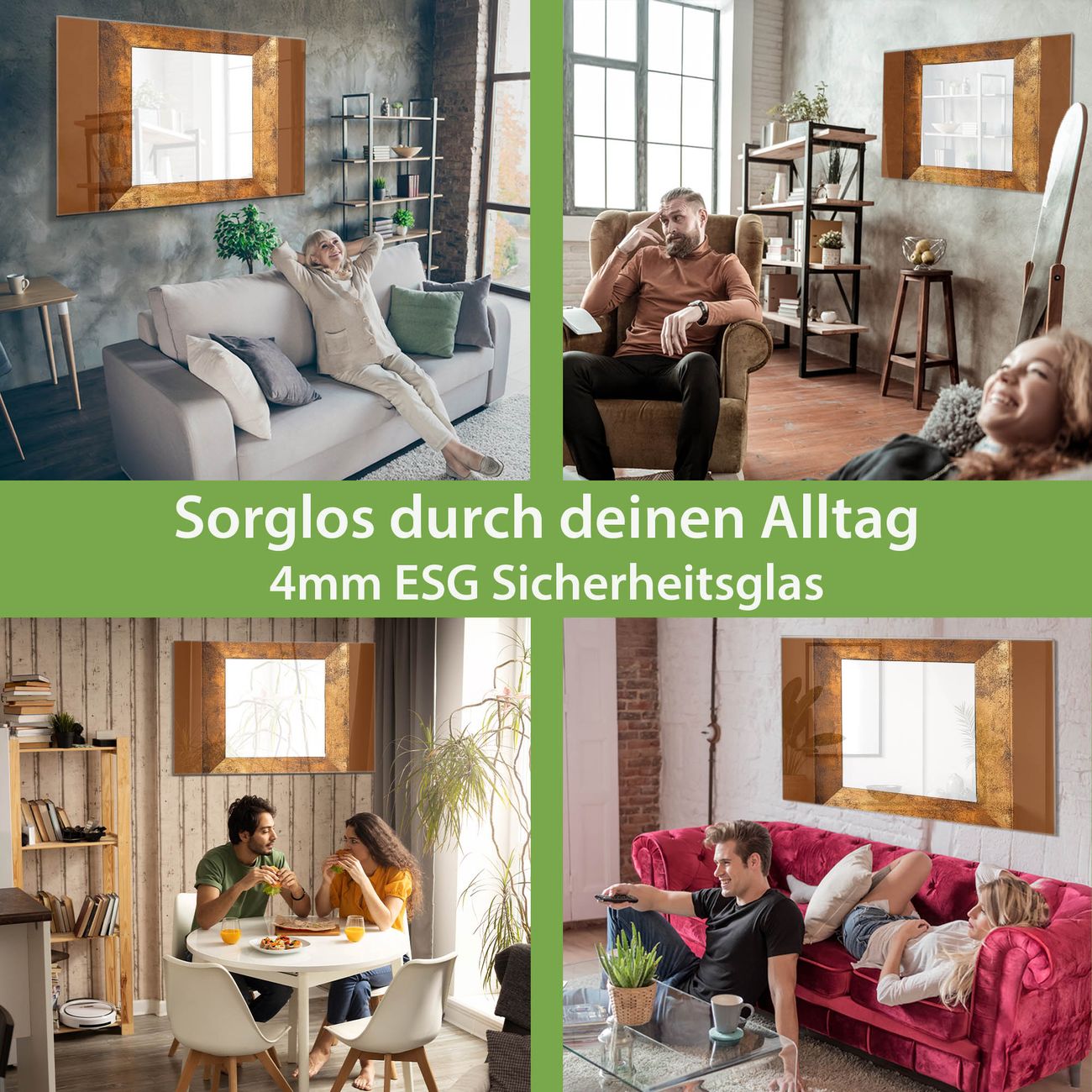 - Material: 4mm Sicherheitsglas mit Metallrückwand
