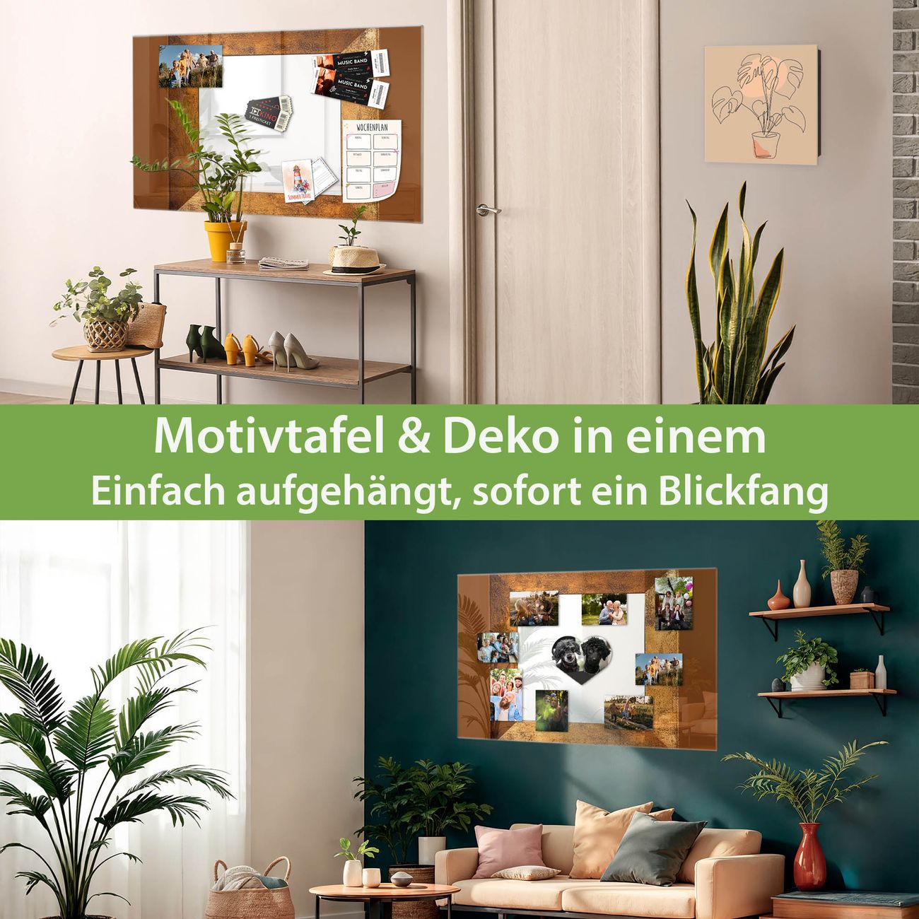 Die banjado Glas Magnettafel mit dem Motiv Motiv Rustikaler Holzrahmen 2 verbindet Funktionalität mit Stil. Sie ersetzt das Zettelchaos durch klare Strukturen und bringt dabei eine warme, natürliche Atmosphäre in Ihr Zuhause. Ob im Büro, in der Küche oder im Eingangsbereich - dieses Design-Board zieht Blicke an und sorgt für Ordnung mit Charakter.