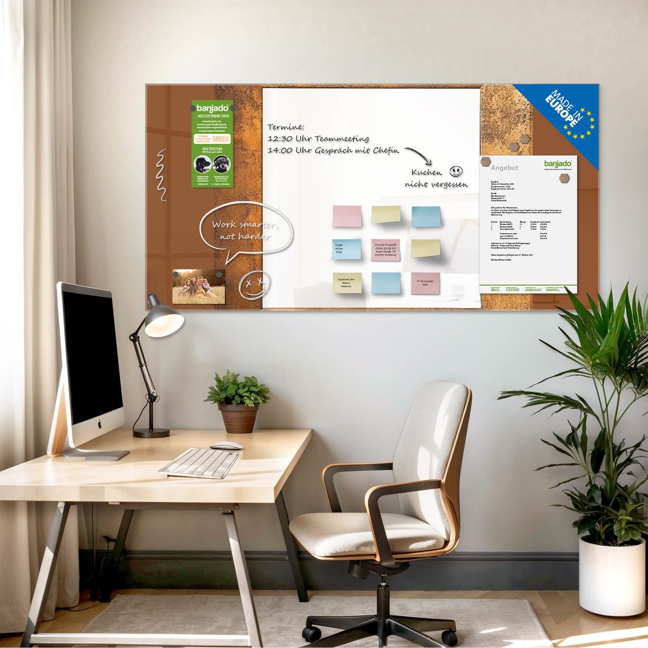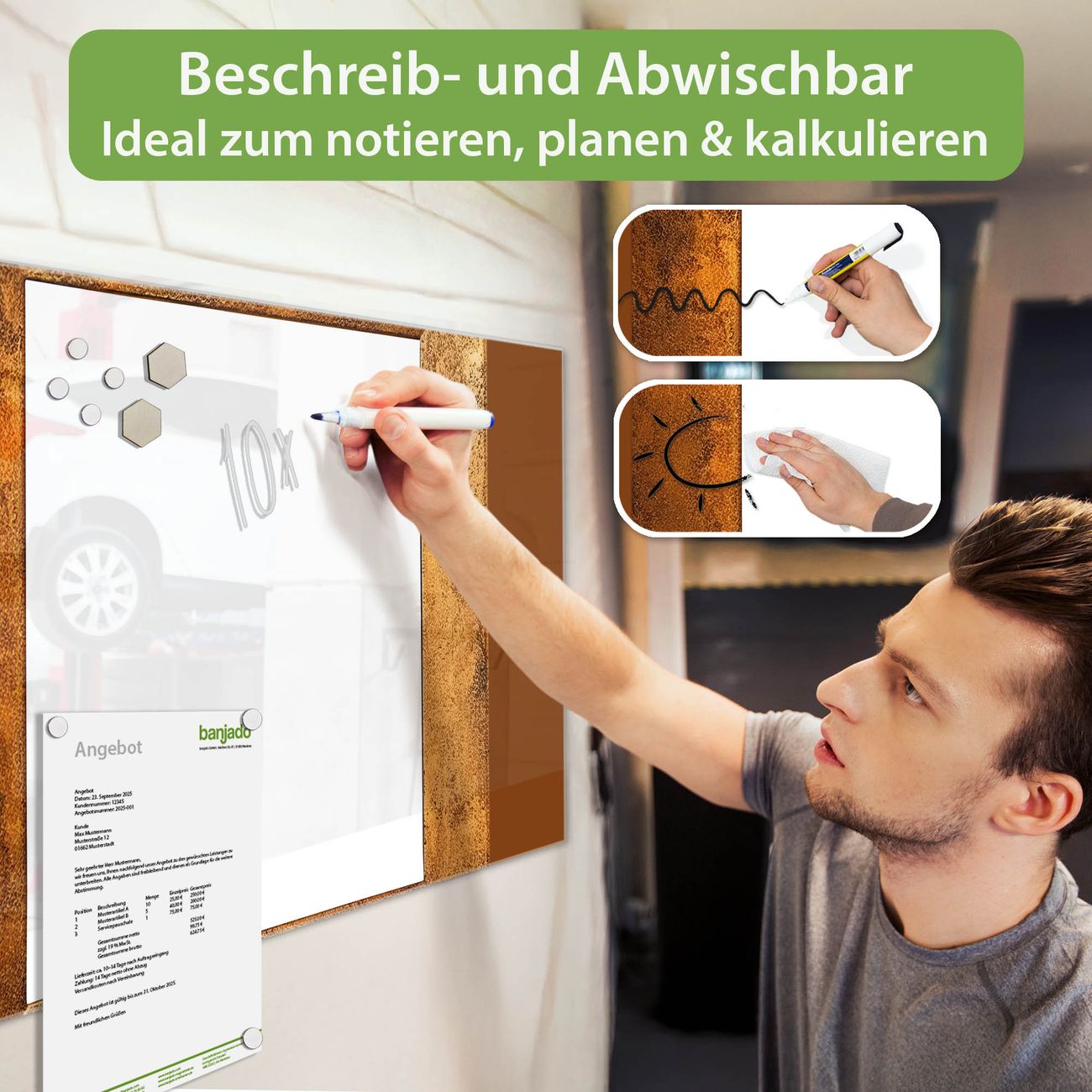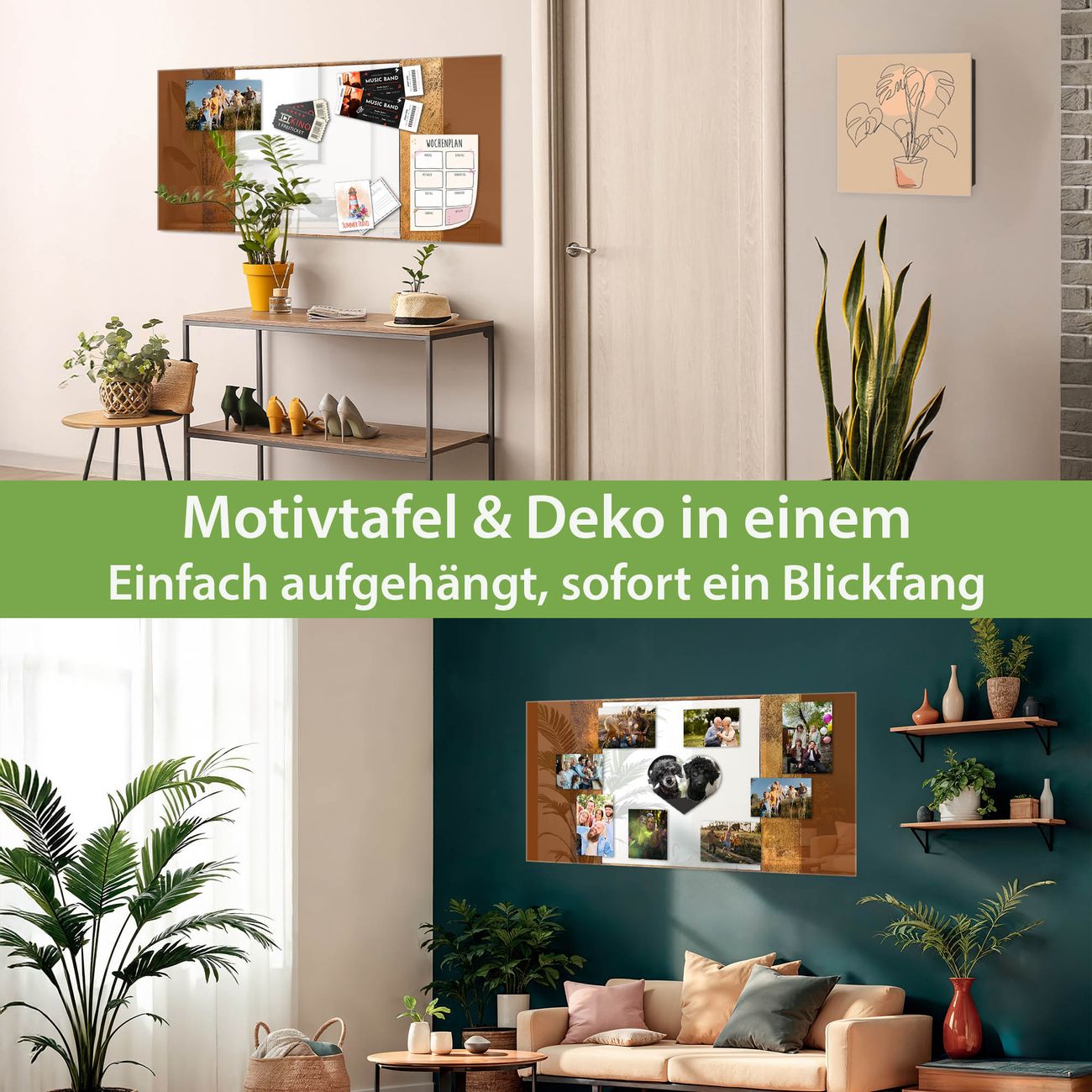 Die banjado Glas Magnettafel mit dem Motiv Motiv Rustikaler Holzrahmen 2 verbindet Funktionalität mit Stil. Sie ersetzt das Zettelchaos durch klare Strukturen und bringt dabei eine warme, natürliche Atmosphäre in Ihr Zuhause. Ob im Büro, in der Küche oder im Eingangsbereich - dieses Design-Board zieht Blicke an und sorgt für Ordnung mit Charakter.