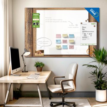 Glas Magnettafel im Querformat Motiv Rustikaler Holzrahmen