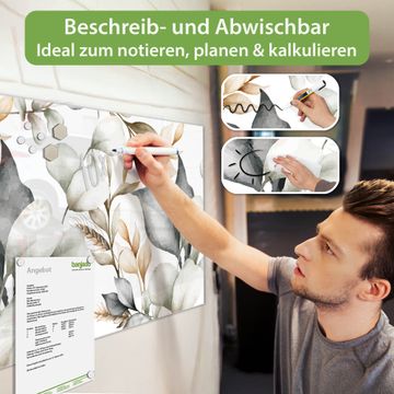 Die banjado Glas Magnettafel mit dem Motiv Motiv Sanfte Blätter verbindet Funktionalität mit Stil. Sie ersetzt das Zettelchaos durch klare Strukturen und bringt dabei eine warme, natürliche Atmosphäre in Ihr Zuhause. Ob im Büro, in der Küche oder im Eingangsbereich - dieses Design-Board zieht Blicke an und sorgt für Ordnung mit Charakter.