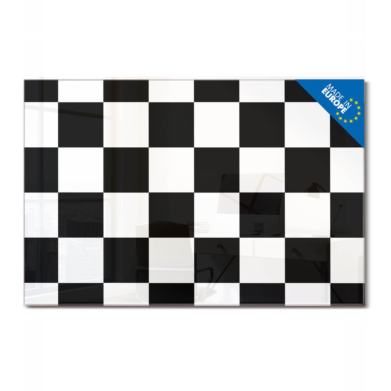 Glas Magnettafel im Querformat Motiv Schachbrettmuster