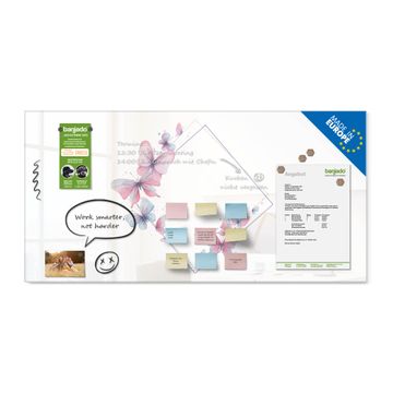 Die banjado Glas Magnettafel mit dem Motiv Motiv Schmetterlingsgarten 2 verbindet Funktionalität mit Stil. Sie ersetzt das Zettelchaos durch klare Strukturen und bringt dabei eine warme, natürliche Atmosphäre in Ihr Zuhause. Ob im Büro, in der Küche oder im Eingangsbereich - dieses Design-Board zieht Blicke an und sorgt für Ordnung mit Charakter.