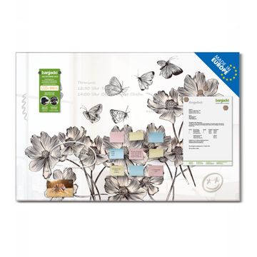 Die banjado Glas Magnettafel mit dem Motiv Motiv Schmetterlingsgarten verbindet Funktionalität mit Stil. Sie ersetzt das Zettelchaos durch klare Strukturen und bringt dabei eine warme, natürliche Atmosphäre in Ihr Zuhause. Ob im Büro, in der Küche oder im Eingangsbereich - dieses Design-Board zieht Blicke an und sorgt für Ordnung mit Charakter.