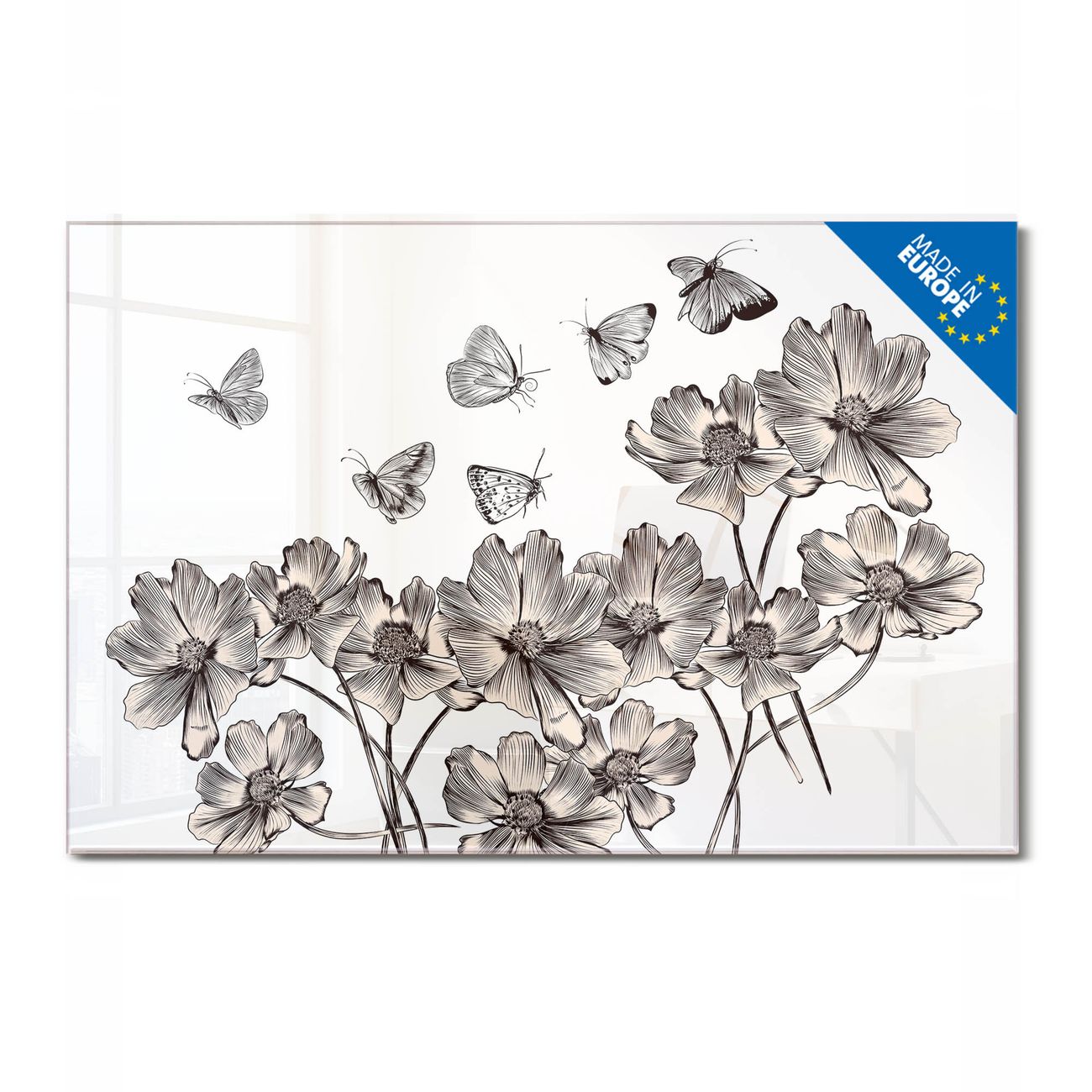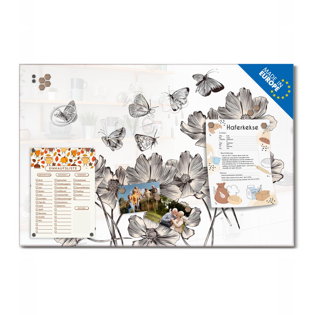 Glas Magnettafel im Querformat Motiv Schmetterlingsgarten