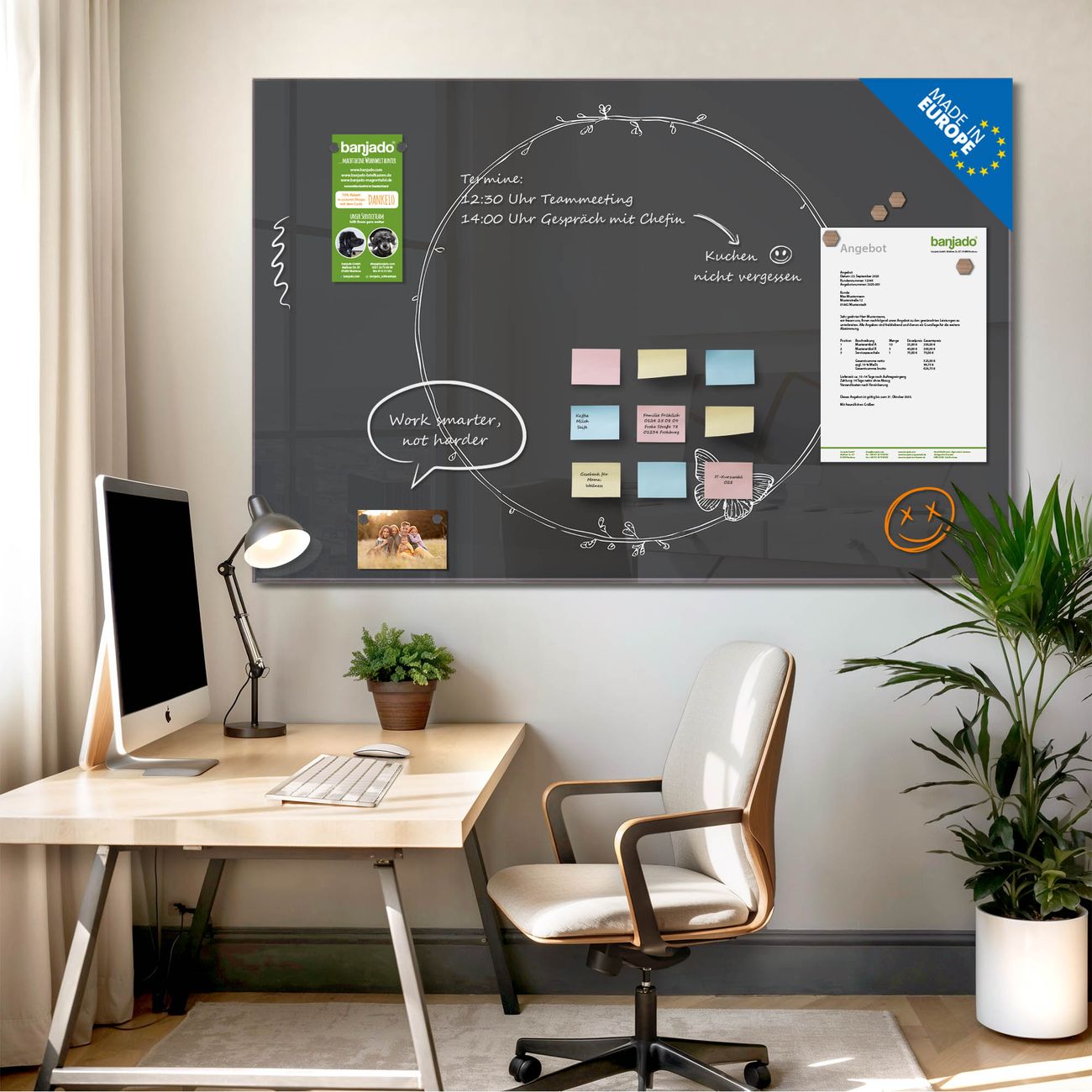 Jede Glas Magnettafel wird in unserer Werkstatt von Hand gefertigt und sorgfältig geprüft. So erhalten Sie ein echtes Qualitätsprodukt, das Funktion und Ästhetik perfekt vereint.?? Warum banjado?