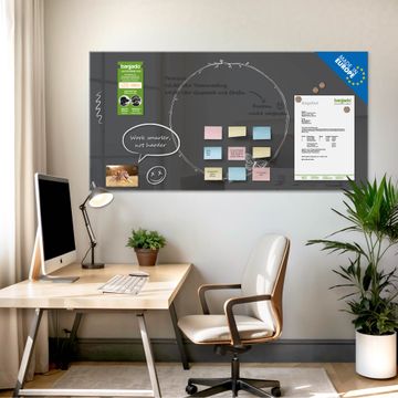 Auf der glatten Glasoberfläche lassen sich Termine, Rezepte oder Notizen ganz einfach mit Kreidestiften festhalten und rückstandslos entfernen. Starke Neodym-Magnete halten Ihre wichtigsten Erinnerungen sicher an Ort und Stelle. So entsteht Ihre ganz persönliche Ideenwand - jeden Tag neu.