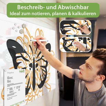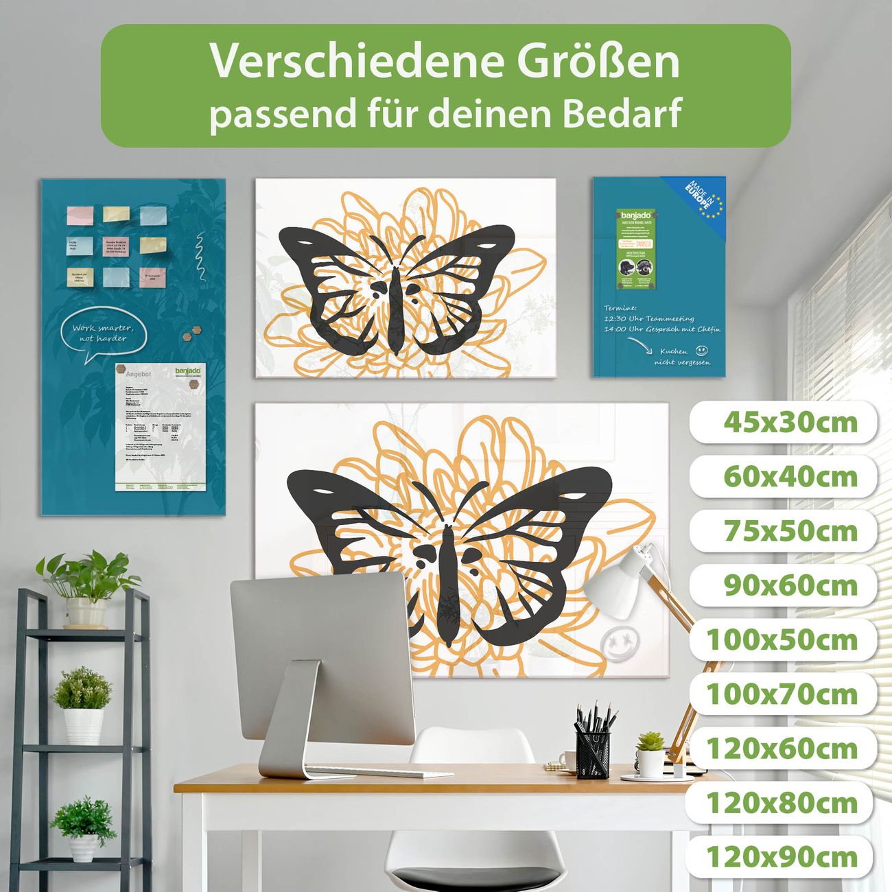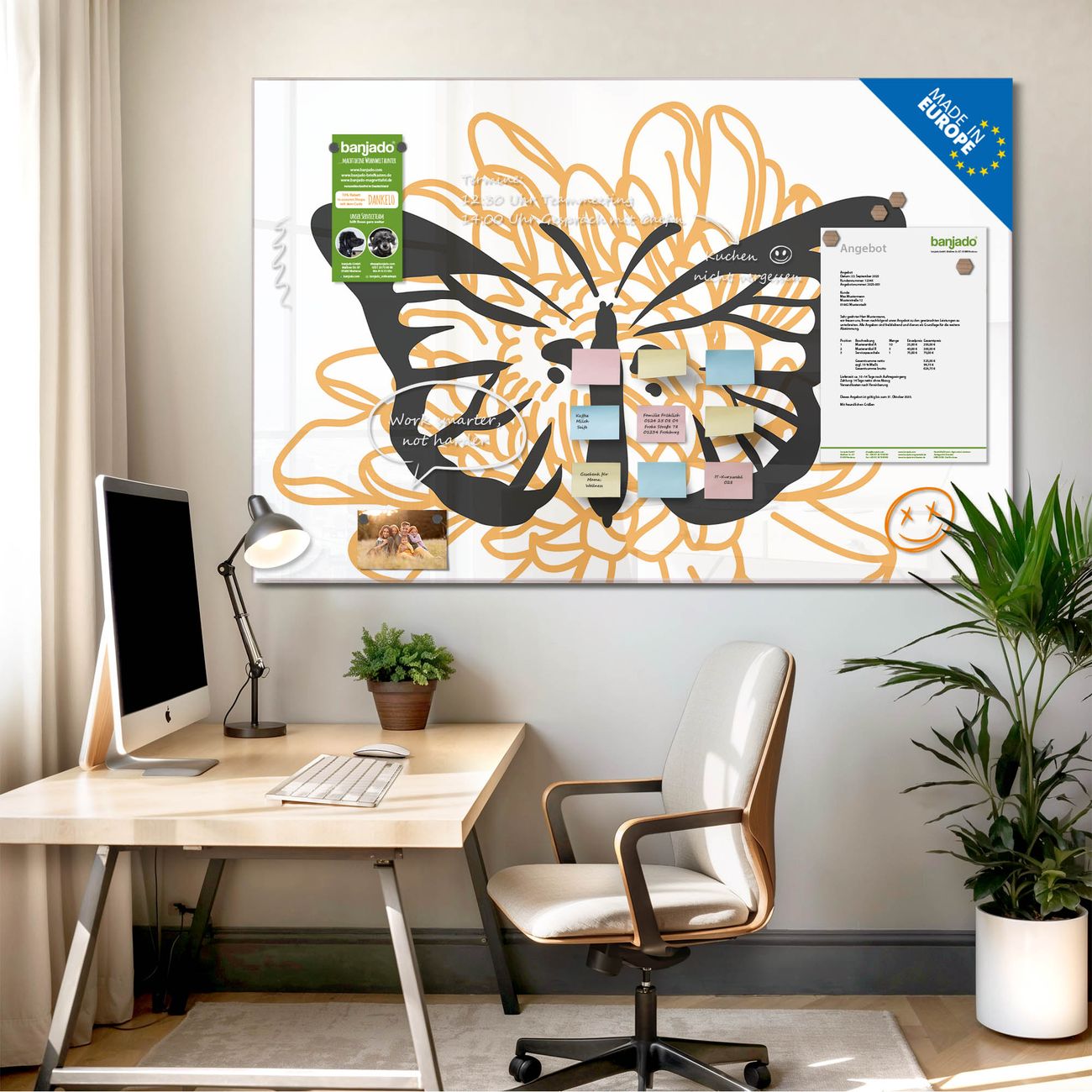 Die banjado Glas Magnettafel mit dem Motiv Motiv Schmetterlingsmystik verbindet Funktionalität mit Stil. Sie ersetzt das Zettelchaos durch klare Strukturen und bringt dabei eine warme, natürliche Atmosphäre in Ihr Zuhause. Ob im Büro, in der Küche oder im Eingangsbereich - dieses Design-Board zieht Blicke an und sorgt für Ordnung mit Charakter.