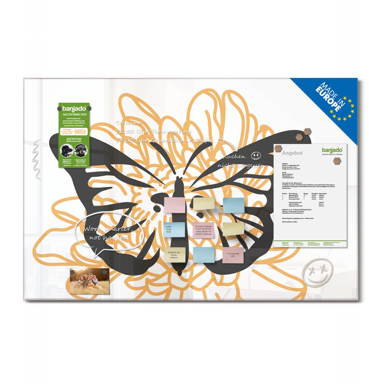 Die banjado Glas Magnettafel mit dem Motiv Motiv Schmetterlingsmystik verbindet Funktionalität mit Stil. Sie ersetzt das Zettelchaos durch klare Strukturen und bringt dabei eine warme, natürliche Atmosphäre in Ihr Zuhause. Ob im Büro, in der Küche oder im Eingangsbereich - dieses Design-Board zieht Blicke an und sorgt für Ordnung mit Charakter.
