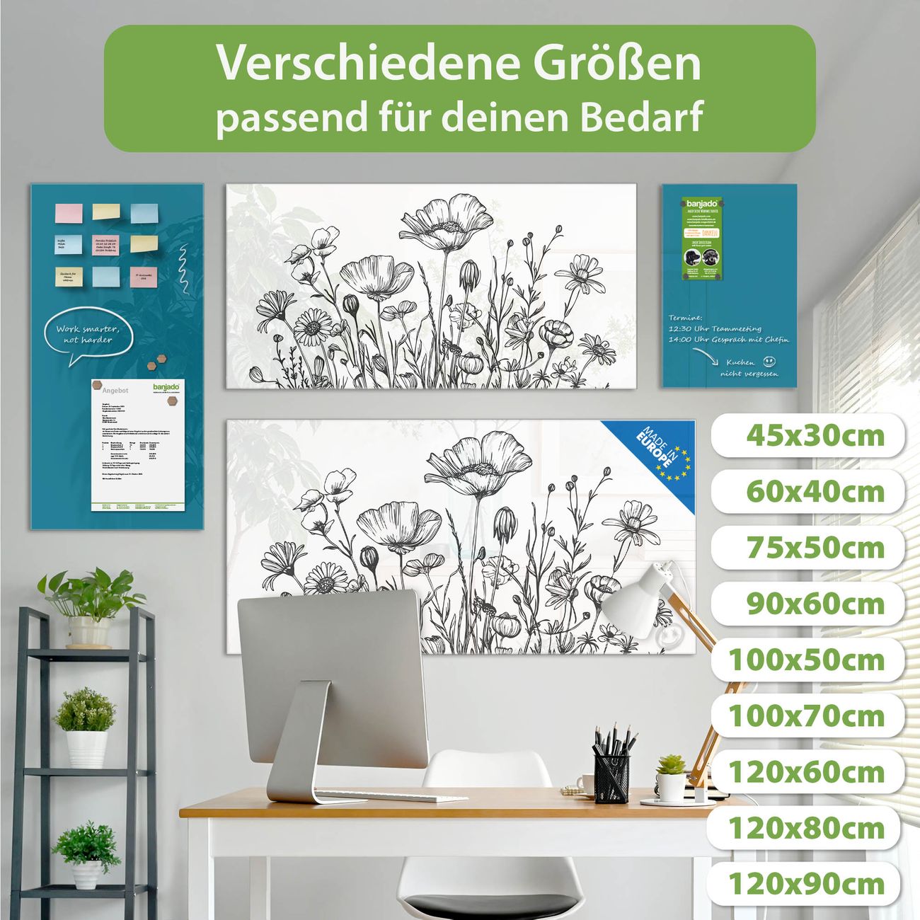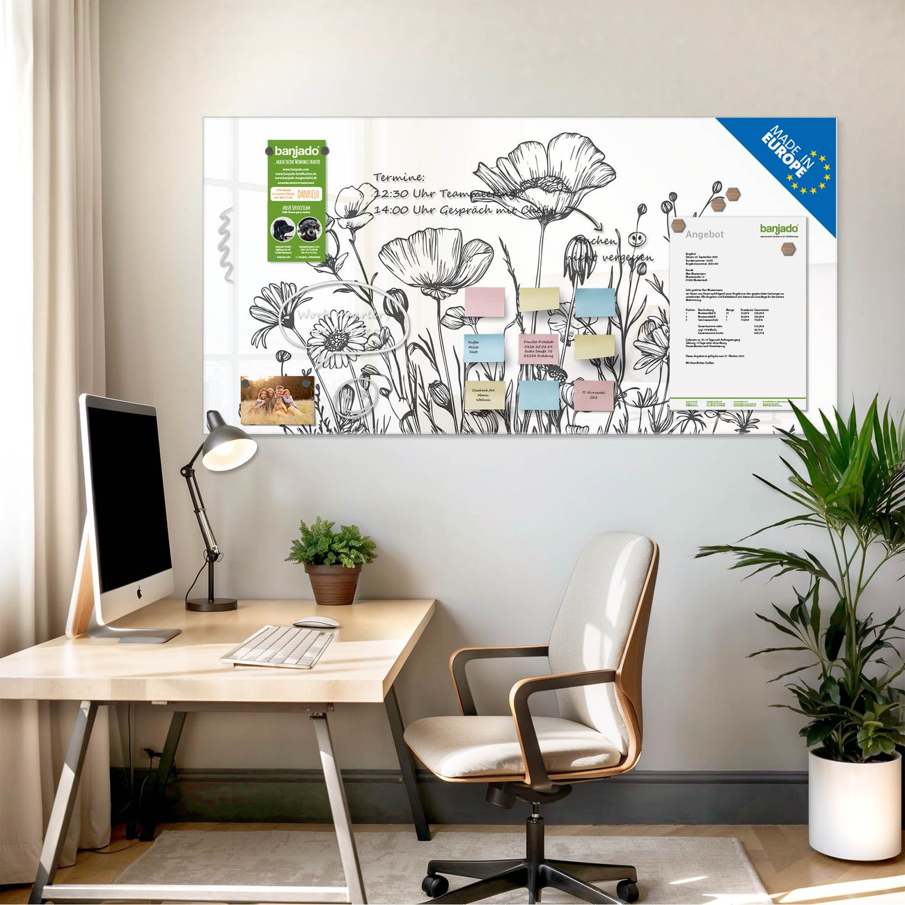 Jede Glas Magnettafel wird in unserer Werkstatt von Hand gefertigt und sorgfältig geprüft. So erhalten Sie ein echtes Qualitätsprodukt, das Funktion und Ästhetik perfekt vereint.?? Warum banjado?