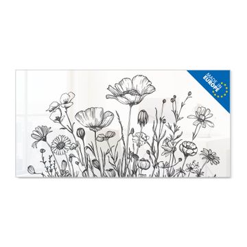 Glas Magnettafel im Querformat Motiv Schwarz-Weiß Blumenzeichnung