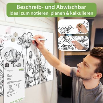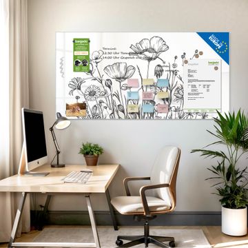 Die banjado Glas Magnettafel mit dem Motiv Motiv Schwarz-Weiß Blumenzeichnung verbindet Funktionalität mit Stil. Sie ersetzt das Zettelchaos durch klare Strukturen und bringt dabei eine warme, natürliche Atmosphäre in Ihr Zuhause. Ob im Büro, in der Küche oder im Eingangsbereich - dieses Design-Board zieht Blicke an und sorgt für Ordnung mit Charakter.