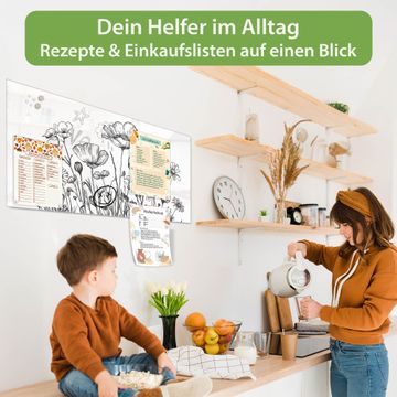 Auf der glatten Glasoberfläche lassen sich Termine, Rezepte oder Notizen ganz einfach mit Kreidestiften festhalten und rückstandslos entfernen. Starke Neodym-Magnete halten Ihre wichtigsten Erinnerungen sicher an Ort und Stelle. So entsteht Ihre ganz persönliche Ideenwand - jeden Tag neu.