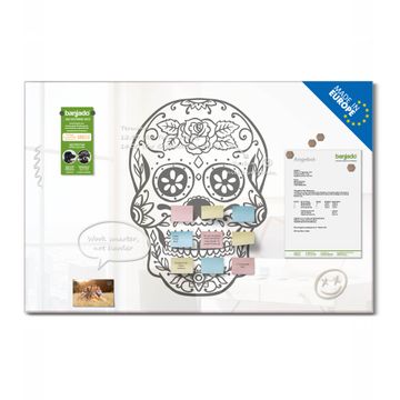Die banjado Glas Magnettafel mit dem Motiv Motiv Schwarz-Weiß Sugar Skull verbindet Funktionalität mit Stil. Sie ersetzt das Zettelchaos durch klare Strukturen und bringt dabei eine warme, natürliche Atmosphäre in Ihr Zuhause. Ob im Büro, in der Küche oder im Eingangsbereich - dieses Design-Board zieht Blicke an und sorgt für Ordnung mit Charakter.