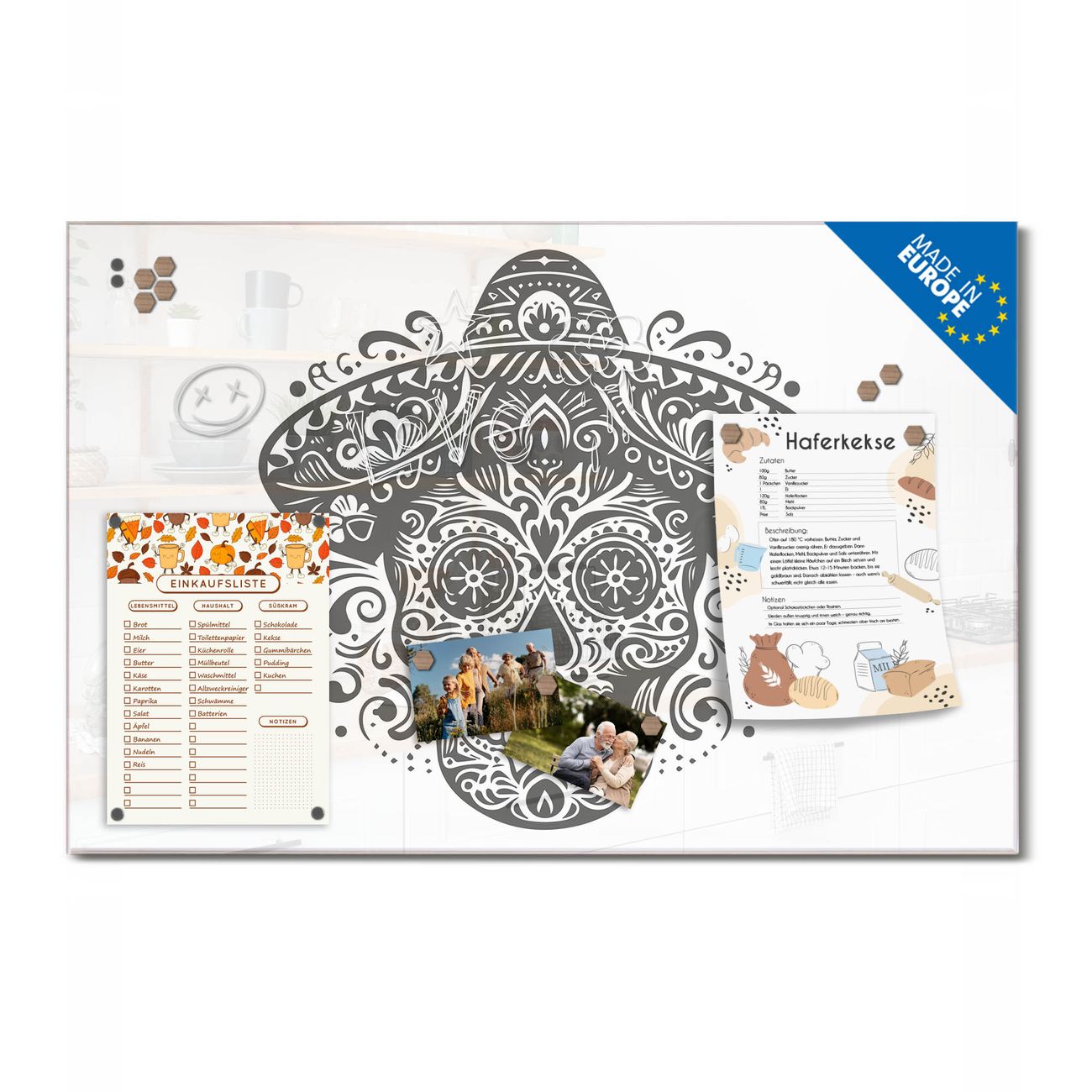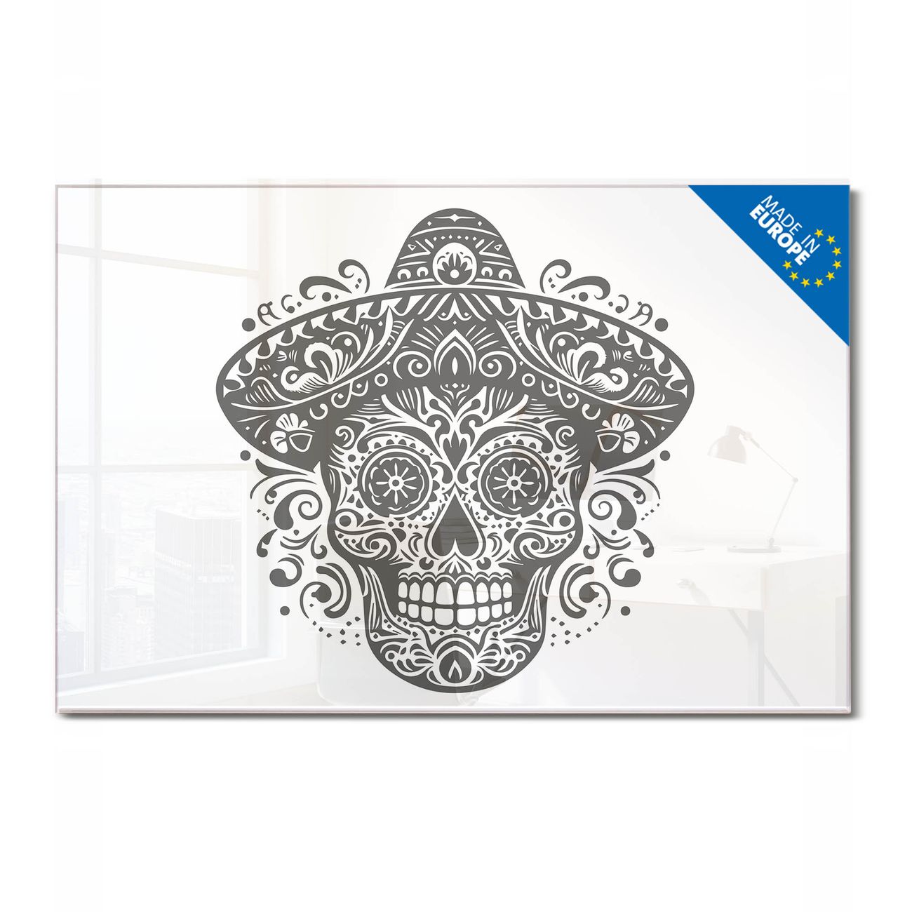 Glas Magnettafel im Querformat Motiv Sombrero Totenkopf