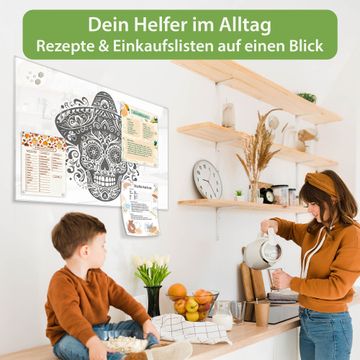 Auf der glatten Glasoberfläche lassen sich Termine, Rezepte oder Notizen ganz einfach mit Kreidestiften festhalten und rückstandslos entfernen. Starke Neodym-Magnete halten Ihre wichtigsten Erinnerungen sicher an Ort und Stelle. So entsteht Ihre ganz persönliche Ideenwand - jeden Tag neu.