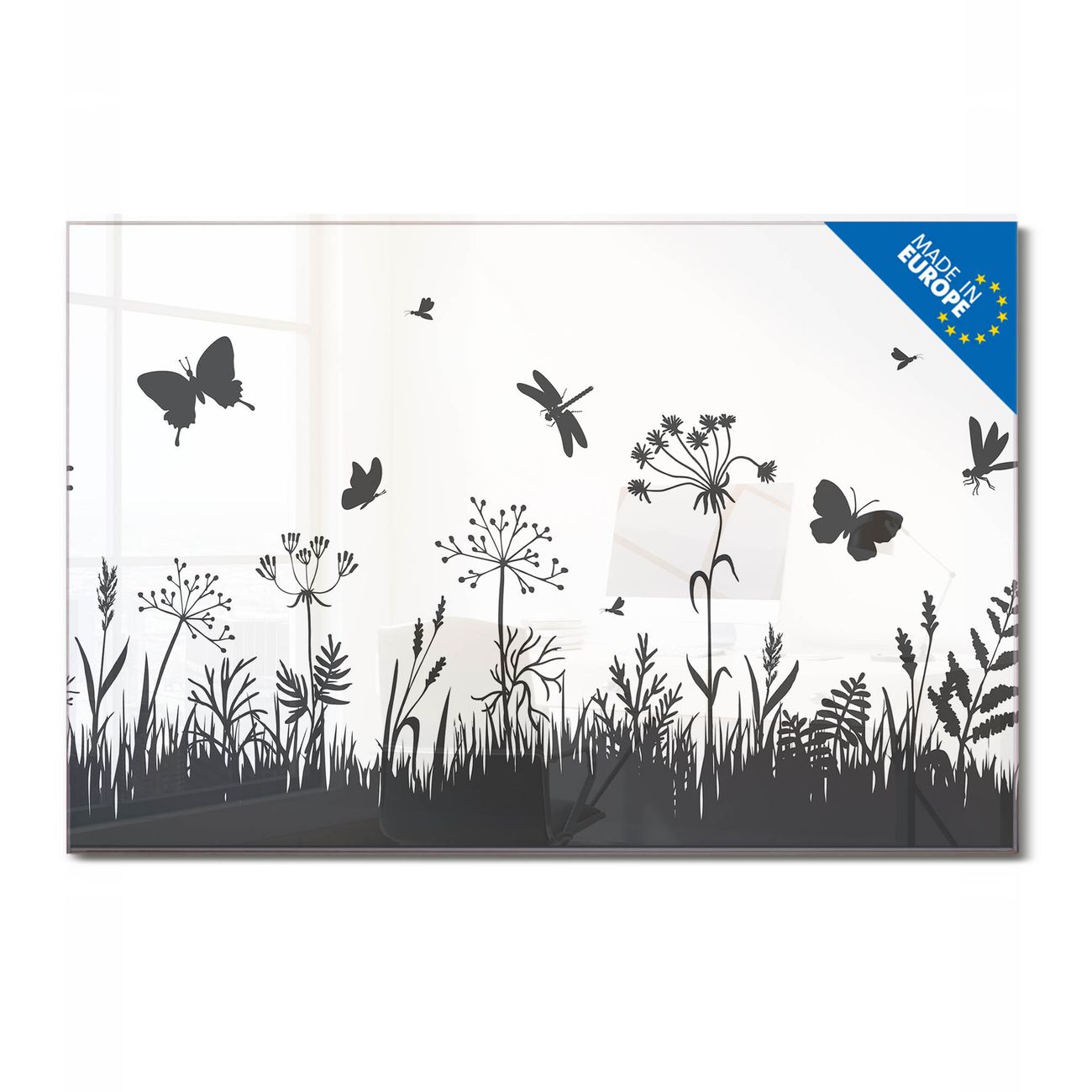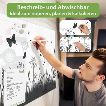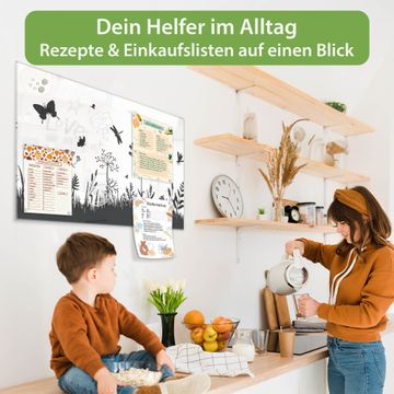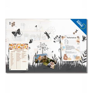 Ein Stück Design, das Ihren Alltag organisiert. Schreiben, heften, inspirieren - alles an einem Ort. Qualität, die man spürt. Montage leicht gemacht. Handwerk mit Herz - veredelt in Sachsen. Einzigartiges Design mit Motiv Motiv Sommerwiese Silhouette Beschreibbare Glasoberfläche, leicht zu reinigen Starke Magnetkraft durch Stahlrückwand Inklusive 4 Neodym-Magneten Flexible Montageoptionen Handveredelt in Sachsen - Qualität, die bleibt