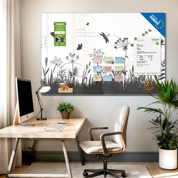 Die banjado Glas Magnettafel mit dem Motiv Motiv Sommerwiese Silhouette verbindet Funktionalität mit Stil. Sie ersetzt das Zettelchaos durch klare Strukturen und bringt dabei eine warme, natürliche Atmosphäre in Ihr Zuhause. Ob im Büro, in der Küche oder im Eingangsbereich - dieses Design-Board zieht Blicke an und sorgt für Ordnung mit Charakter.