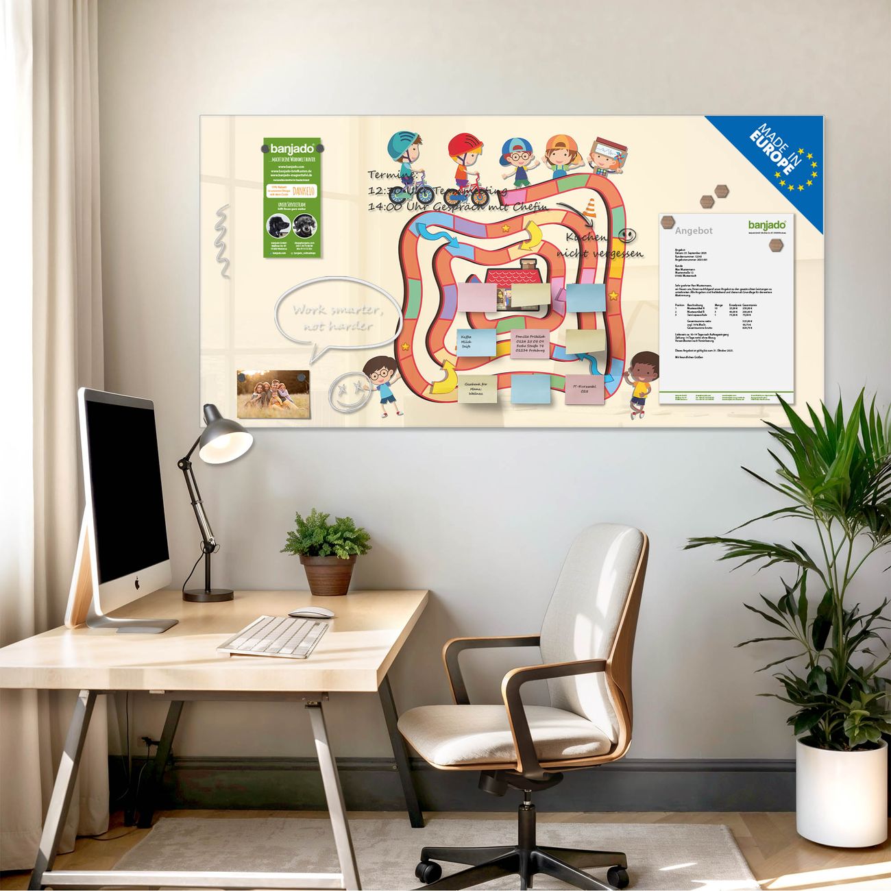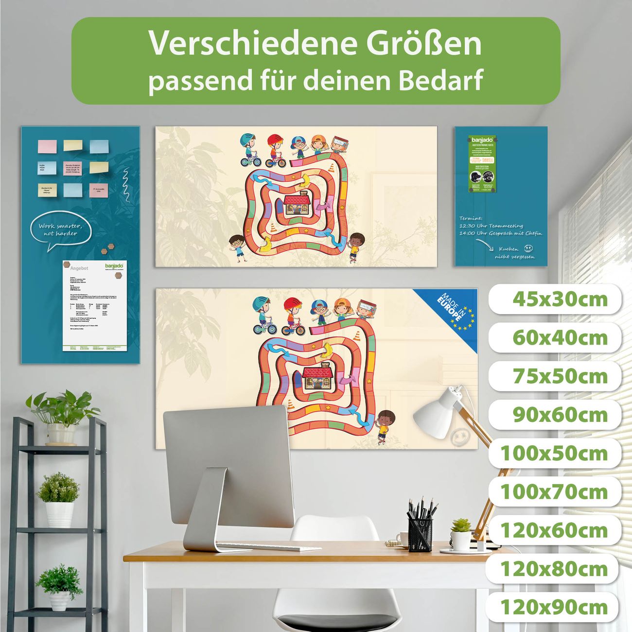 Jede Glas Magnettafel wird in unserer Werkstatt von Hand gefertigt und sorgfältig geprüft. So erhalten Sie ein echtes Qualitätsprodukt, das Funktion und Ästhetik perfekt vereint.?? Warum banjado?
