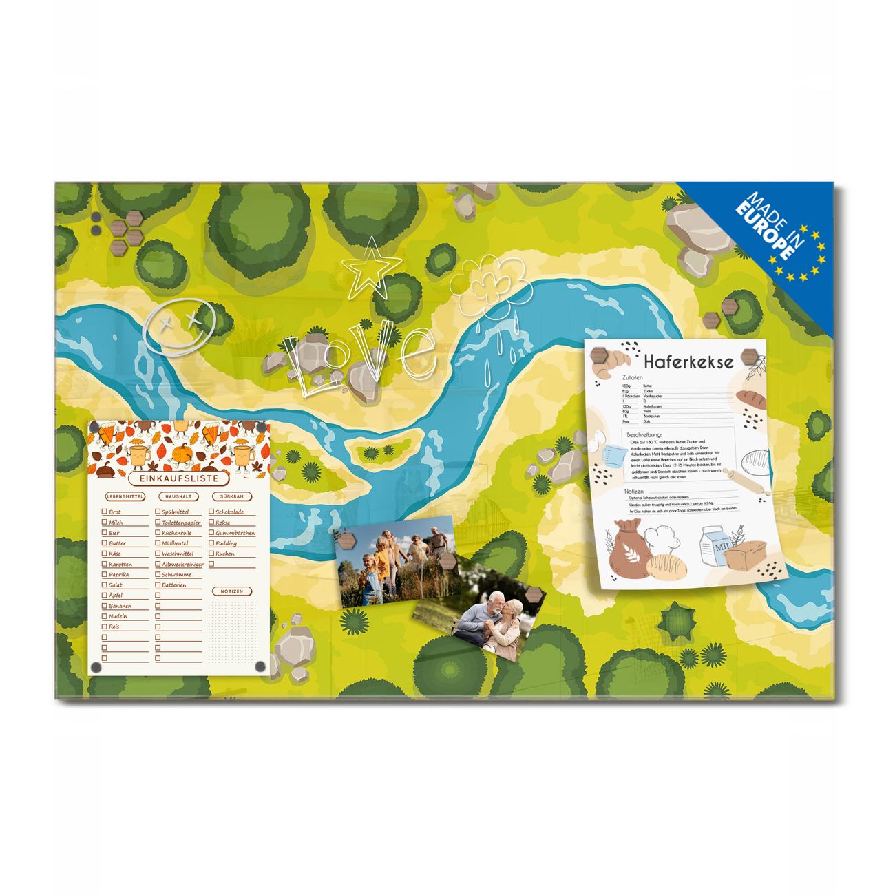 Ein Stück Design, das Ihren Alltag organisiert. Schreiben, heften, inspirieren - alles an einem Ort. Qualität, die man spürt. Montage leicht gemacht. Handwerk mit Herz - veredelt in Sachsen. Einzigartiges Design mit Motiv Motiv Spielehintergrund Beschreibbare Glasoberfläche, leicht zu reinigen Starke Magnetkraft durch Stahlrückwand Inklusive 4 Neodym-Magneten Flexible Montageoptionen Handveredelt in Sachsen - Qualität, die bleibt