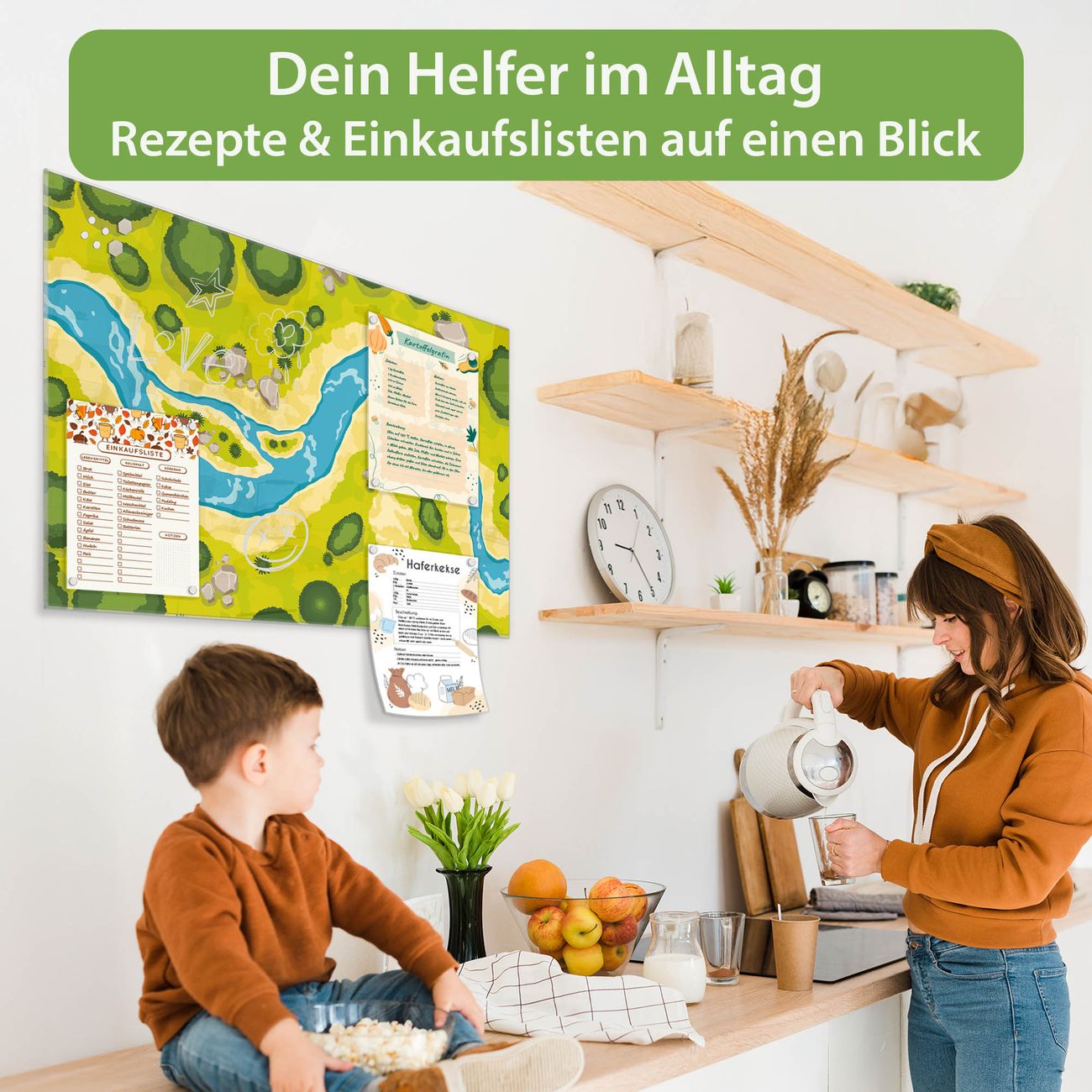 Auf der glatten Glasoberfläche lassen sich Termine, Rezepte oder Notizen ganz einfach mit Kreidestiften festhalten und rückstandslos entfernen. Starke Neodym-Magnete halten Ihre wichtigsten Erinnerungen sicher an Ort und Stelle. So entsteht Ihre ganz persönliche Ideenwand - jeden Tag neu.