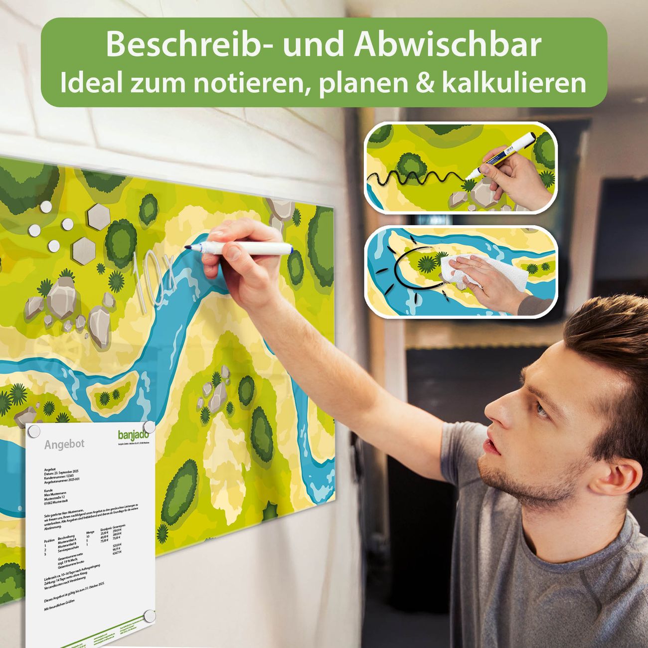 Jede Glas Magnettafel wird in unserer Werkstatt von Hand gefertigt und sorgfältig geprüft. So erhalten Sie ein echtes Qualitätsprodukt, das Funktion und Ästhetik perfekt vereint.?? Warum banjado?