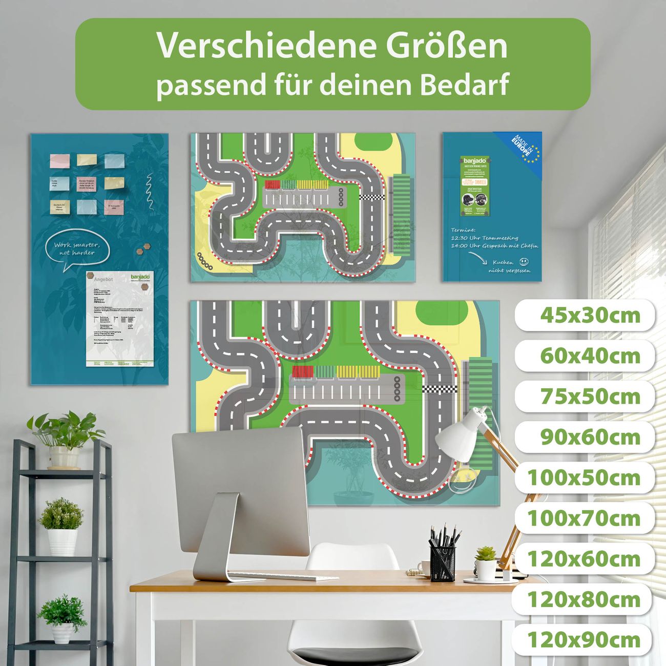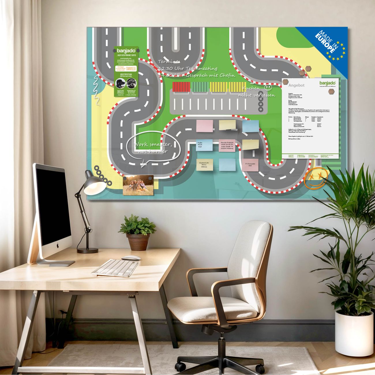 Jede Glas Magnettafel wird in unserer Werkstatt von Hand gefertigt und sorgfältig geprüft. So erhalten Sie ein echtes Qualitätsprodukt, das Funktion und Ästhetik perfekt vereint.?? Warum banjado?