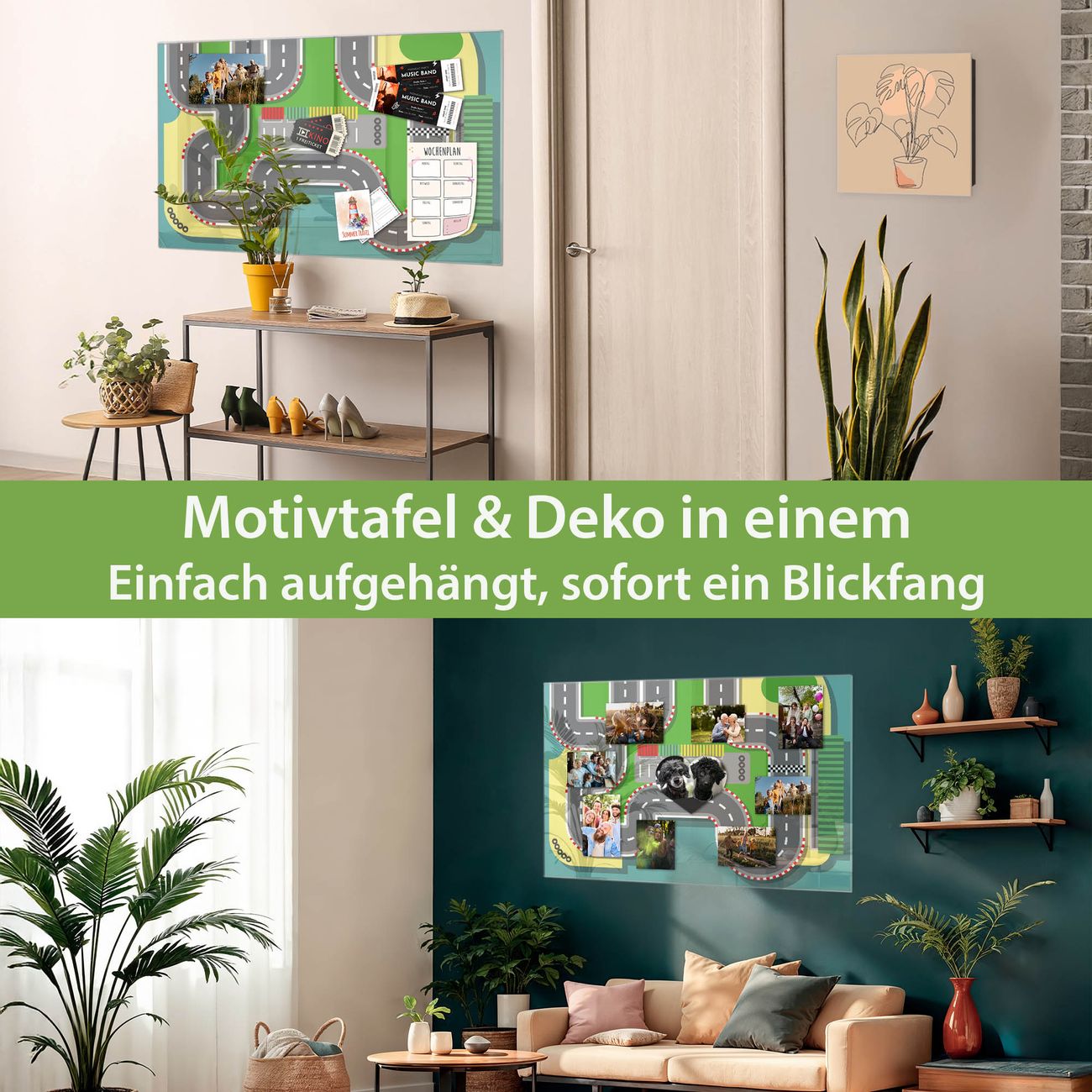 Die banjado Glas Magnettafel mit dem Motiv Motiv Spielstraße 2 verbindet Funktionalität mit Stil. Sie ersetzt das Zettelchaos durch klare Strukturen und bringt dabei eine warme, natürliche Atmosphäre in Ihr Zuhause. Ob im Büro, in der Küche oder im Eingangsbereich - dieses Design-Board zieht Blicke an und sorgt für Ordnung mit Charakter.