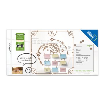 Auf der glatten Glasoberfläche lassen sich Termine, Rezepte oder Notizen ganz einfach mit Kreidestiften festhalten und rückstandslos entfernen. Starke Neodym-Magnete halten Ihre wichtigsten Erinnerungen sicher an Ort und Stelle. So entsteht Ihre ganz persönliche Ideenwand - jeden Tag neu.