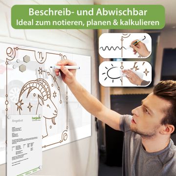 Die banjado Glas Magnettafel mit dem Motiv Motiv Steinbock Sternzeichen Illustration verbindet Funktionalität mit Stil. Sie ersetzt das Zettelchaos durch klare Strukturen und bringt dabei eine warme, natürliche Atmosphäre in Ihr Zuhause. Ob im Büro, in der Küche oder im Eingangsbereich - dieses Design-Board zieht Blicke an und sorgt für Ordnung mit Charakter.