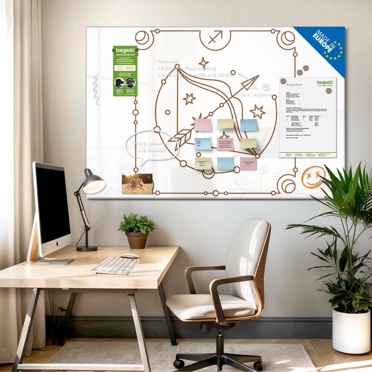 Die banjado Glas Magnettafel mit dem Motiv Motiv Sternzeichen Schütze verbindet Funktionalität mit Stil. Sie ersetzt das Zettelchaos durch klare Strukturen und bringt dabei eine warme, natürliche Atmosphäre in Ihr Zuhause. Ob im Büro, in der Küche oder im Eingangsbereich - dieses Design-Board zieht Blicke an und sorgt für Ordnung mit Charakter.
