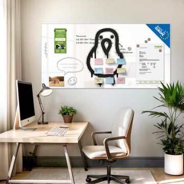 Auf der glatten Glasoberfläche lassen sich Termine, Rezepte oder Notizen ganz einfach mit Kreidestiften festhalten und rückstandslos entfernen. Starke Neodym-Magnete halten Ihre wichtigsten Erinnerungen sicher an Ort und Stelle. So entsteht Ihre ganz persönliche Ideenwand - jeden Tag neu.